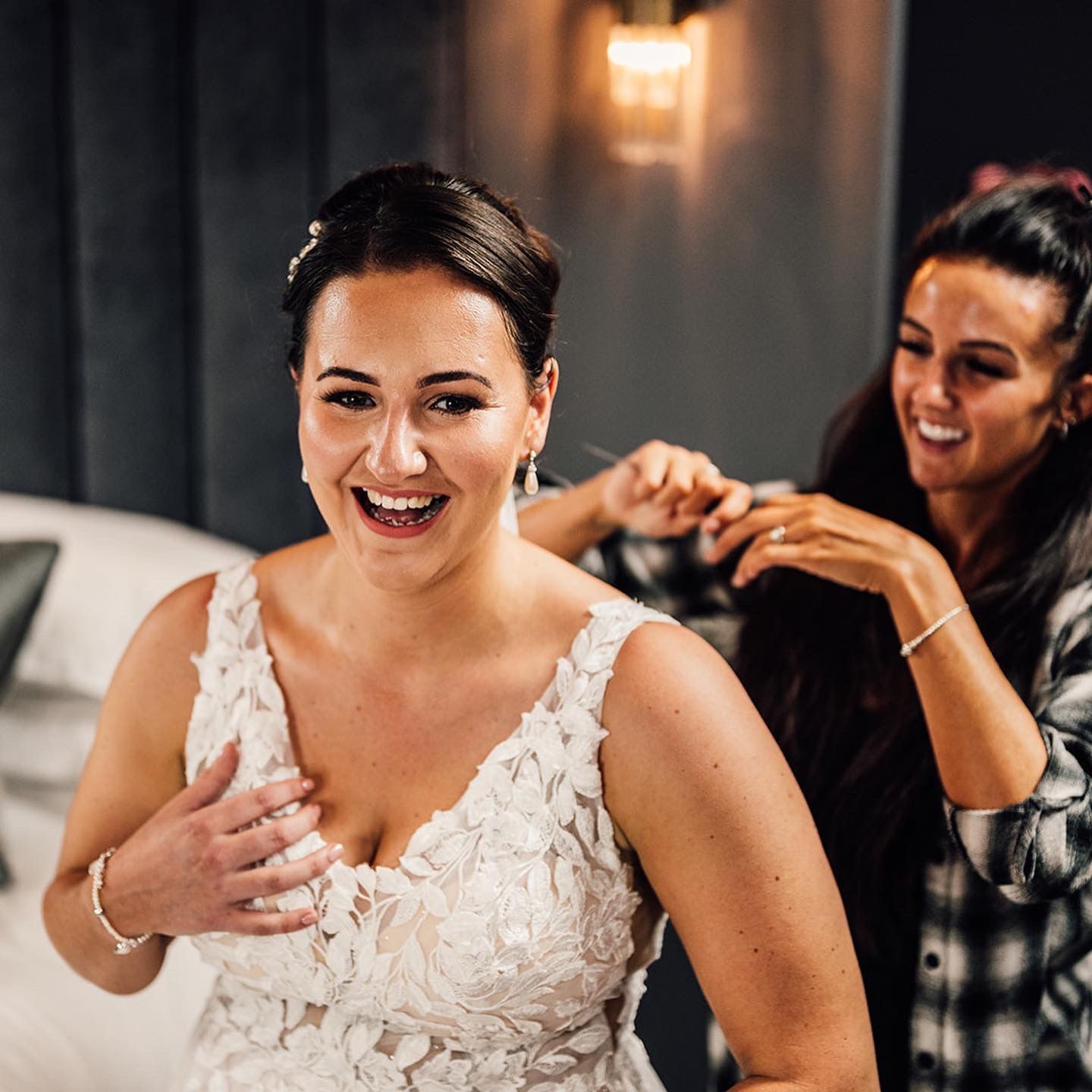 “Lisa did my wedding hair and I couldn't have been happier with it. She took the time to make sure it was what I wanted and did it to perfection. She also did the hair of my flow girls which looked stunning. Due to their age and excitement they were twirling around with it and she tweaked it about 3 times each for all 3 of them before we left for the church to make sure it was perfect and it lasted all day and night, even through twirling, cartwheeling and dancing galore! She just put everyone at ease and was genuinely lovely. Also I went for my trail before the wedding in her salon which is absolutely stunning!"